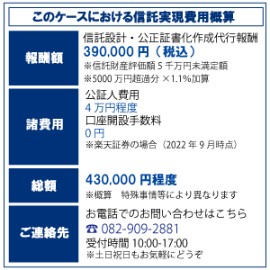 具体的にはお子様名義の信託口口座等に委託者であるお父様の口座から、上場株式など有価証券を移し、お子様は信託契約で定められた目的に従ってその有価証券の管理や取引を行うことができます。お父様が認知症になった後も信託口口座は凍結しないため、引き続きお子様が取引をすることができます。また、信託契約では、お父様が亡くなった後の信託財産(ここでは信託口口座内の預貯金)の帰属権利者を定めますので、遺言としての効力もあり、相続手続きもスムーズに行うことができます。