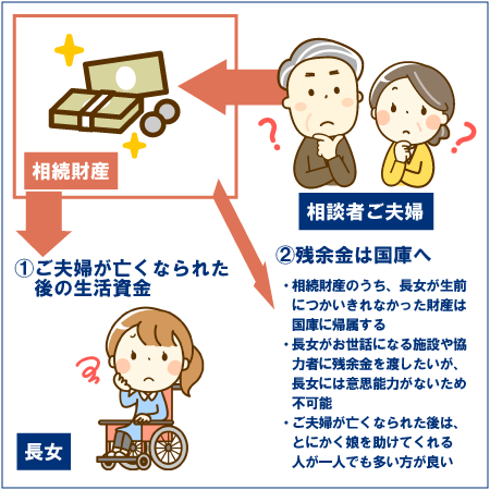 今のままでは、娘さんが亡くなった後の残った財産は、国庫に収められることになってしまいます。